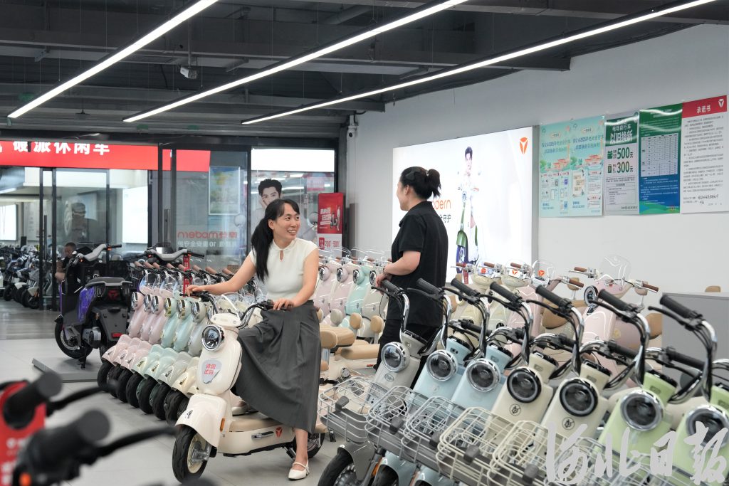 “家里的电车骑了很多年了,赶着以旧换新有补贴,挑辆称心的换一下。”7月3日,保定市民贾女士来到该市大慈阁电动自行车商城,准备购买新的电动自行车。